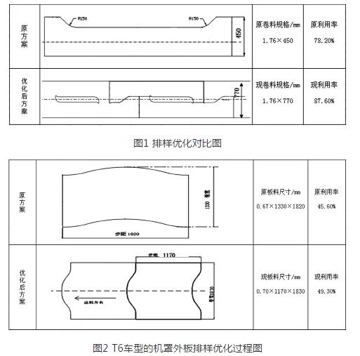 通过工艺优化,材料利用率提高3.7%,同时减少原T6机罩外板专用的钢材规格,增加了材料的通用性,降低了库存与管理成本。