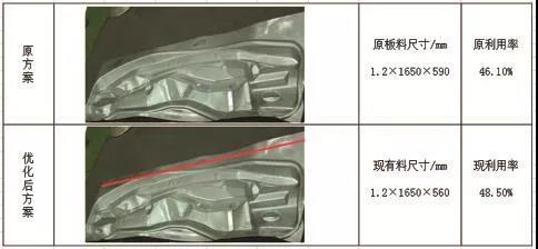 通过调整毛坯板料在拉延模内的定位,减少拉延筋以外多余材料的工艺补充,从而减小零件所需的毛坯板料尺寸,提高材料的利用率。