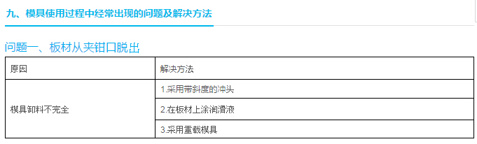 9、因为成型工具需要较长的卸料时间,因此成型加工时一定要采用低速,最好要有延时。