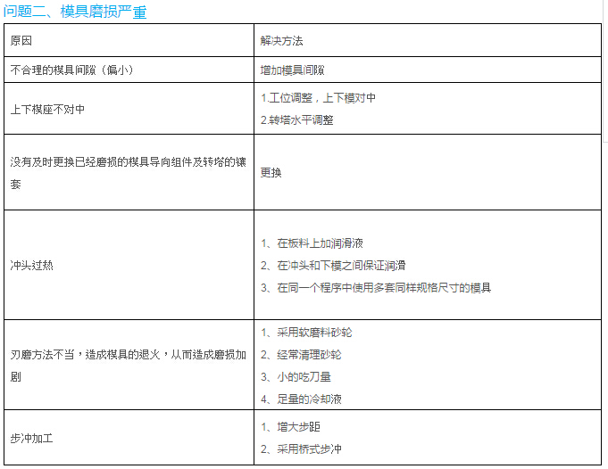 1、冲头、下模的再刃磨。刃口锋利的模具能加工出漂亮的切断面,刃口钝了,则需要额外的冲压力,而且工件断面粗糙,产生很大的抵抗力,造成冲头被材料咬住。